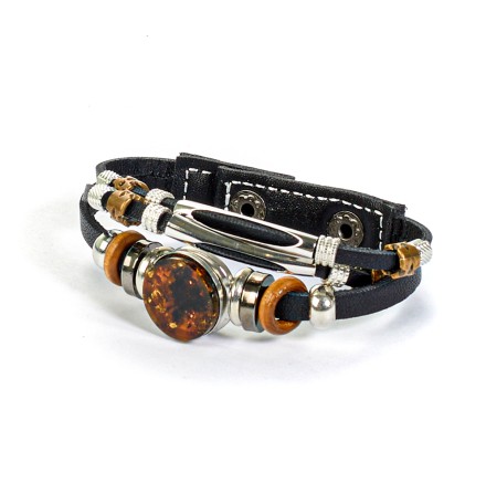 Браслет "Многослойный" из Янтаря на кожаном ремешке артикул 65010072 Вы можете заказать в нашем интернет магазине "Янтарь России" с бесплатной доставкой по всей России