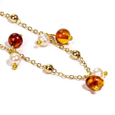 Браслет-Анклет "Фантазия" из Янтаря и жемчуга артикул 3101411801 Вы можете заказать в нашем интернет магазине "Янтарь России" с бесплатной доставкой по всей России