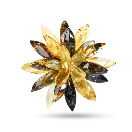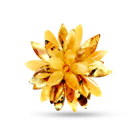 Брошь "Лотос" из Янтаря артикул 65320103 Вы можете заказать в нашем интернет магазине "Янтарь России" с бесплатной доставкой по всей России