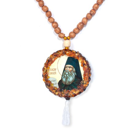 Автомобильные четки с иконами "Силуан-Евгений" с Янтарем артикул 65268900 Вы можете заказать в нашем интернет магазине "Янтарь России" с бесплатной доставкой по всей России
