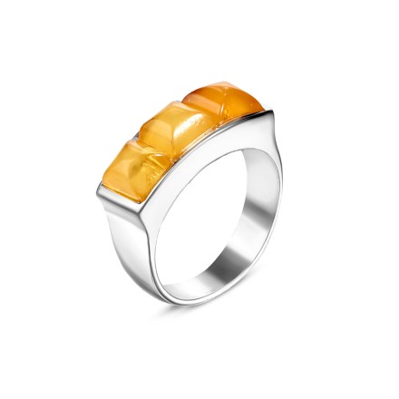 Кольцо "Трио" Посеребрение с Янтарем артикул 1330081 Вы можете заказать в нашем интернет магазине "Янтарь России" с бесплатной доставкой по всей России