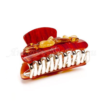 Заколка - краб красн. с Янтарем артикул 65001660 Вы можете заказать в нашем интернет магазине "Янтарь России" с бесплатной доставкой по всей России
